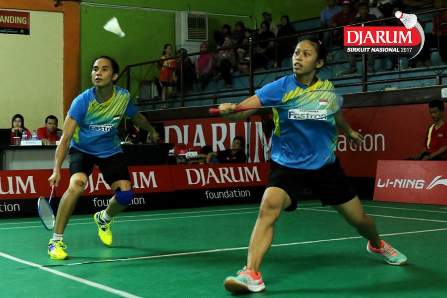 Devi Tika P/Keshya Nurvita H (Berkat Abadi Banjarmasin) Mengembalikan shuttlecock Ke Arah Lawan