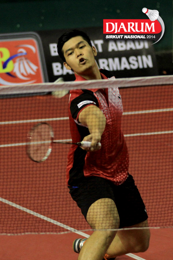 I Putu Riy Danu (Semen Gresik) mengembalikan shuttlecock ke arah Rifan Fauzin (Pelatnas)