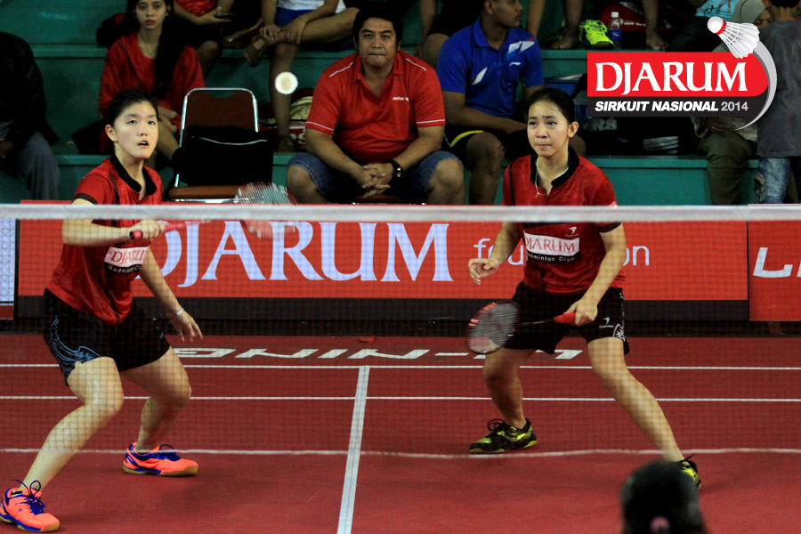 Jessica Muljati/Yulia Yosephine (Shamrock Medan) menyambar pengembalian dari Deariska Putri/Sri Wulan (Djarum Kudus/Jaya Raya)