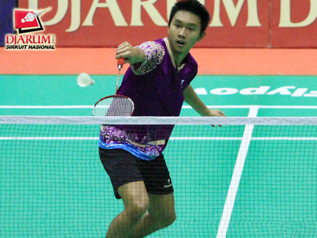 Setyaldi Putra Wibowo (Guna Dharma) siap mengembalikan kok yang di oper oleh Rico Hamdani dari Tangkas Specs.
