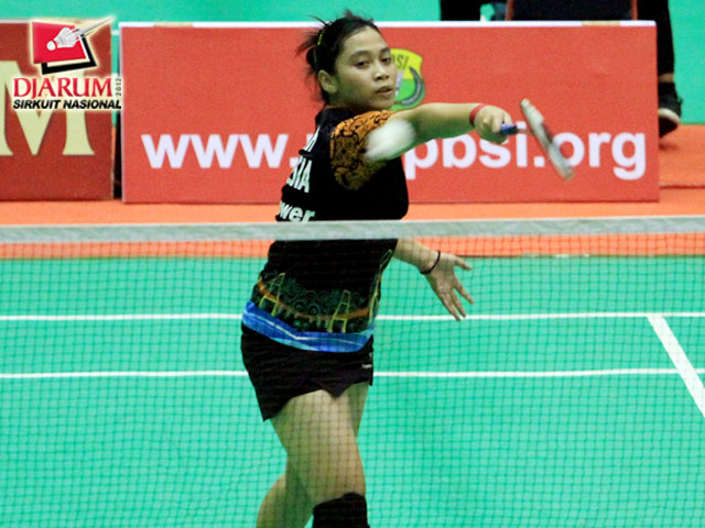 Pemain tunggal dewasa putri, Ana Rovita (Djarum Kudus) yang sedang berhadapan dengan Pia Zebaidah Bernadet (Pusdiklat jaya Raya).