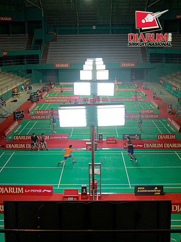 Suasana GOR Ari Lasut, Manado dengan enam lapangan saat digunakan sejumlah atlet berlatih.