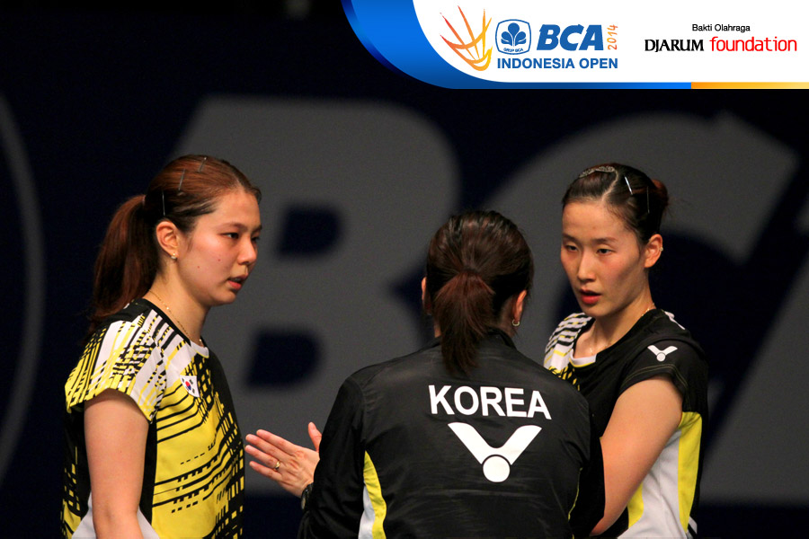 Jang Ye Na/So Young Kim (Korea Selatan) saat mendapatkan pengarahan dari pelatihnya