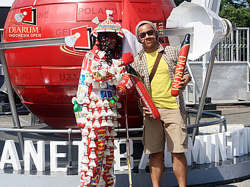 Suporter setia badminton bergaya di Planet Badminton dengan kostum