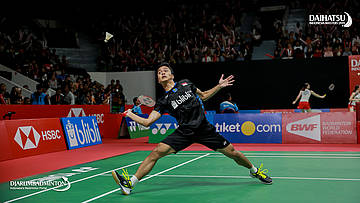 Anthony Sinisuka GINTING (Indonesia) bersiap melepaskan serangan