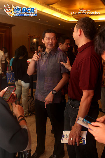 Taufik Hidayat saat berbincang dengan salah satu rekannya