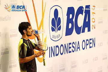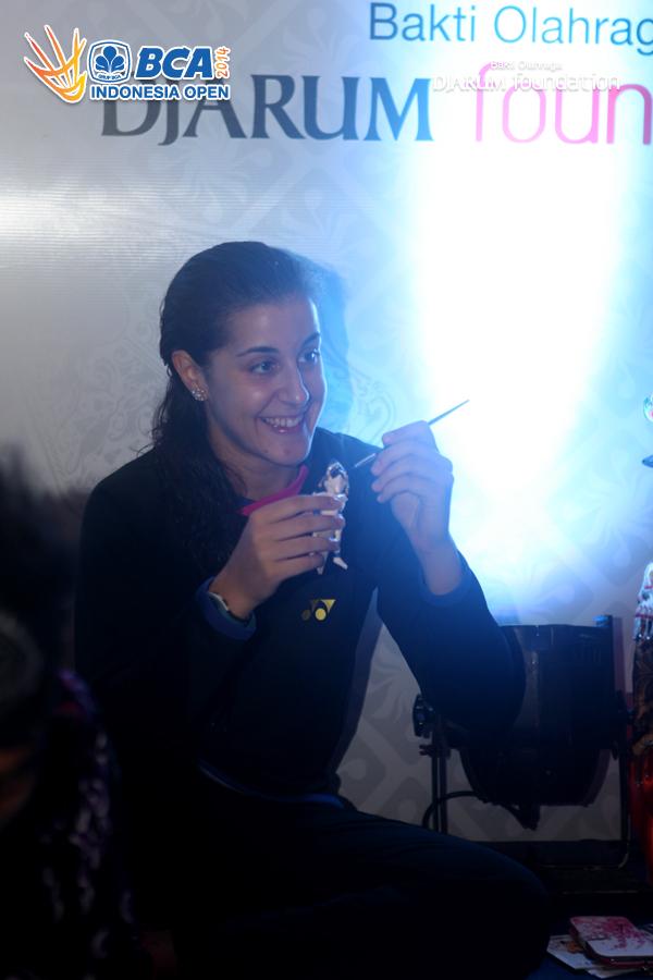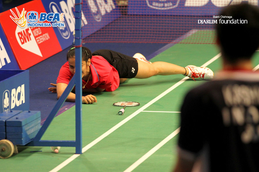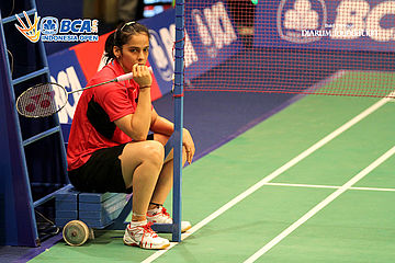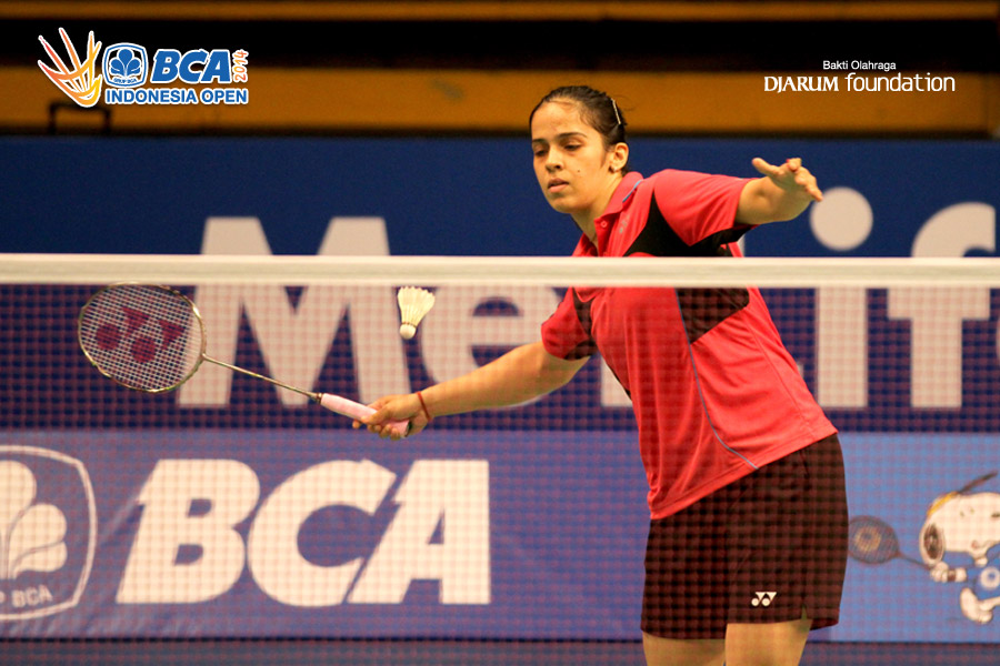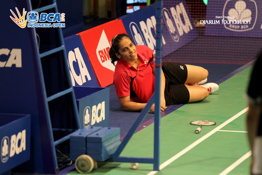 Saina Nehwal (India) saat menunggu giliran untuk berlatih di Istora Senayan