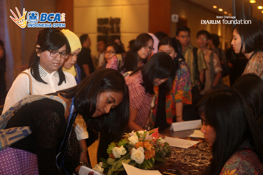 Beberapa wartawan saat melakukan registrasi untuk meliput kegiatan Welcome Dinner di Hotel Sultan