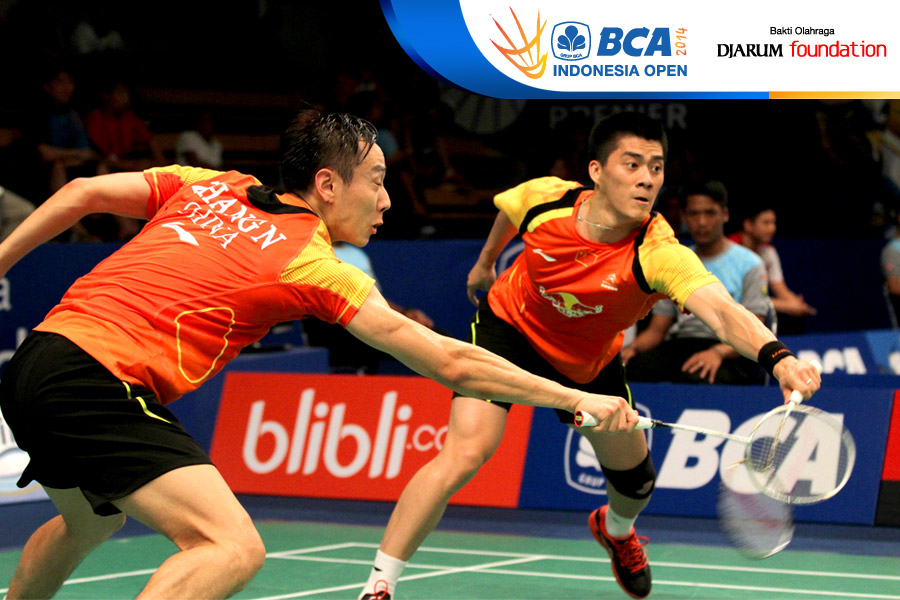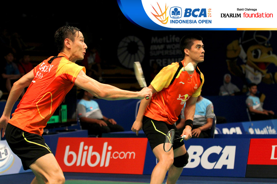 Kekompakan Fu Haifeng/Zhang Nan (China) di dalam lapangan saat melawan Mathias Boe/Carsten Mogensen (Denmark)