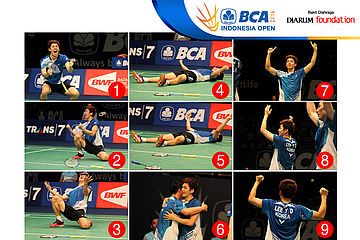 Kolase selebrasi Mohammad Ahsan (Indonesia)