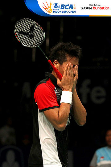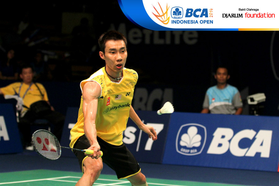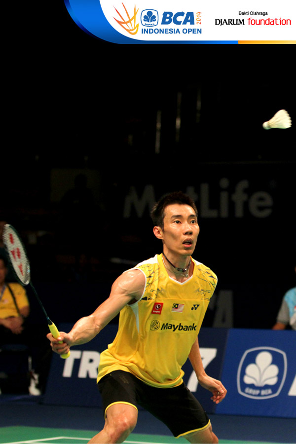 Lee Chong Wei (Malaysia) bersiap melepaskan jumping smash