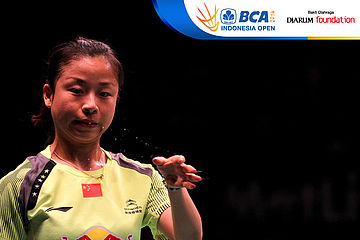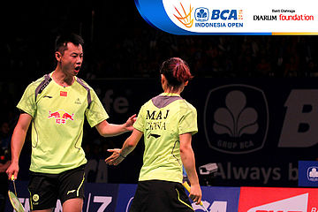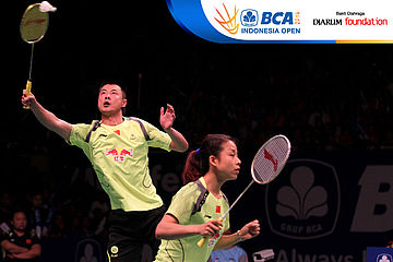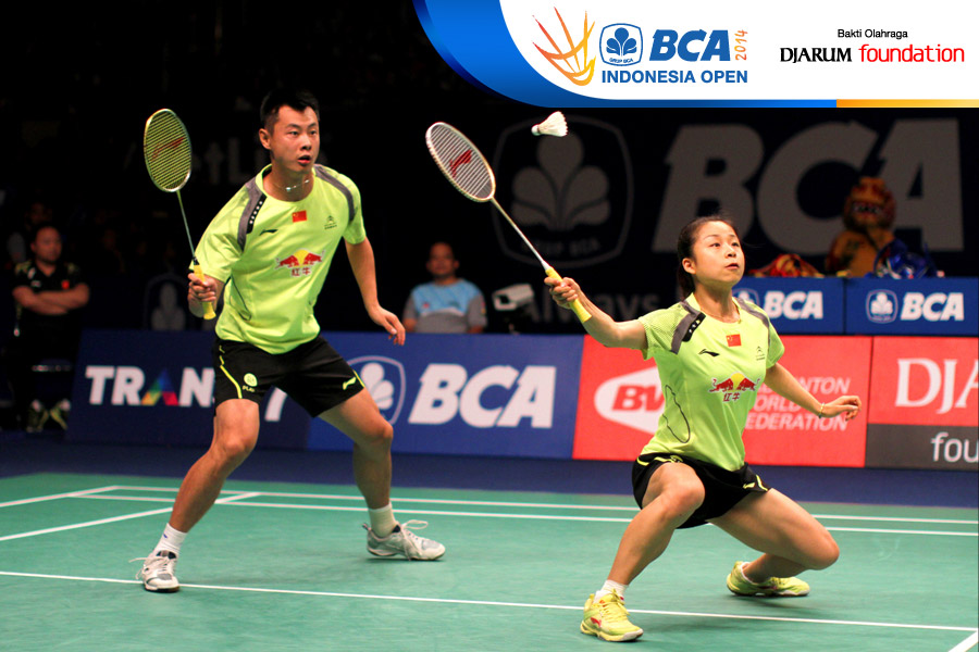 Kekompakan Xu Chen/Ma Jin (China) di lapangan saat menghadapi Tontowi Ahmad/Liliyana Natsir (Indonesia)