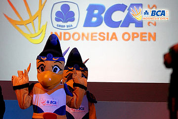 Dua maskot BIO pada gelaran Press Conference BCA Indonesia Open Super Series Premier 2015