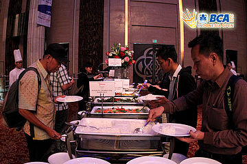 Para media menikmati hidangan pada gelaran Press Conference BCA Indonesia Open Super Series Premier 2015