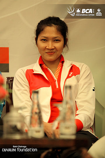 Lindaweni Fanetri, salah satu pebulutangkis andalan Indonesia saat acara press conference.