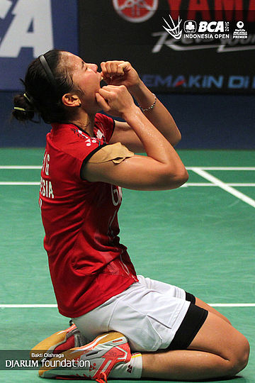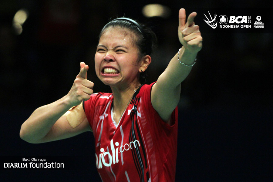 Selebrasi Greysia Polii (Indonesia).
