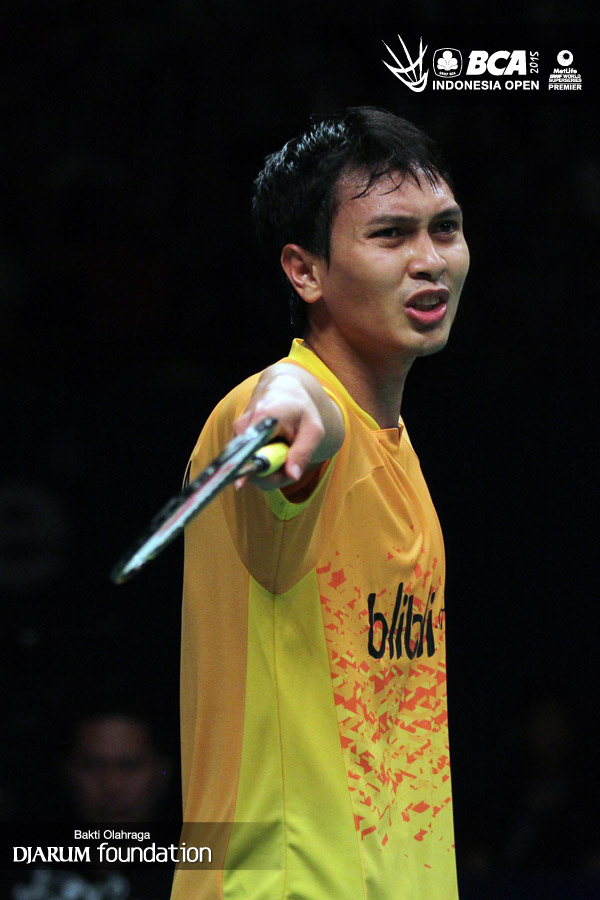 Mohamad Ahsan (Indonesia) saat melakukan protes.