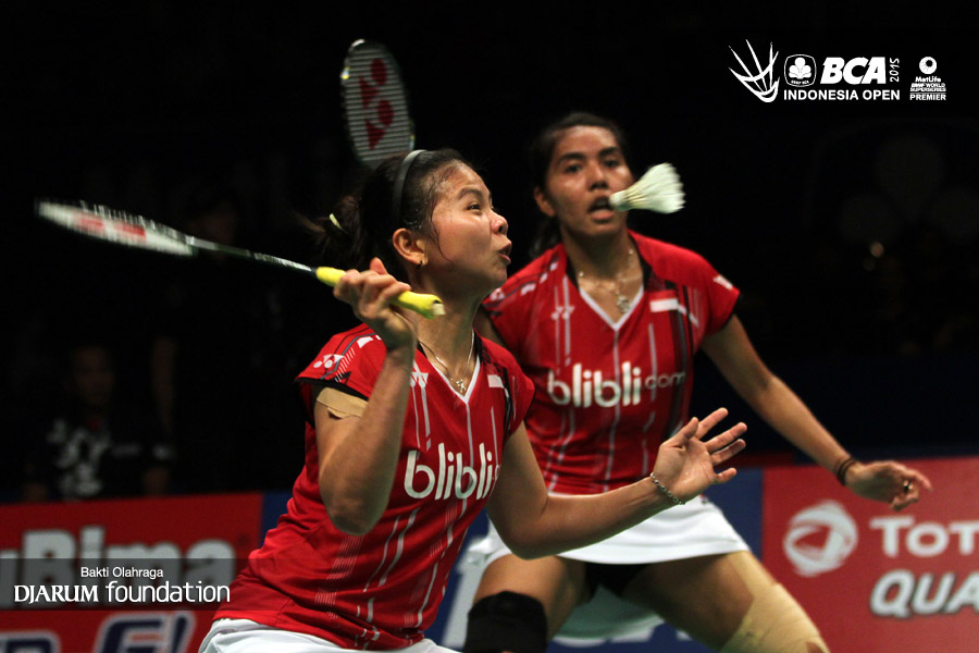 Nitya Krishinda M dan Greysia Polii (Indonesia) saat melakukan meet and greet.