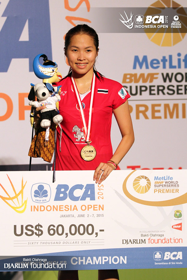 Ratchanok Intanon (Thailand) saat di podium juara