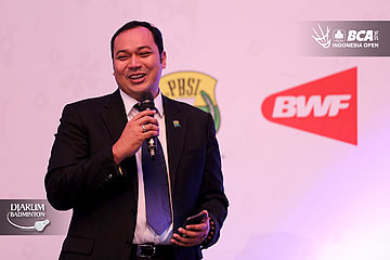 Ketua Umum PP PBSI Gita Wirjawan memberikan sambutan