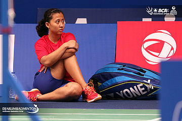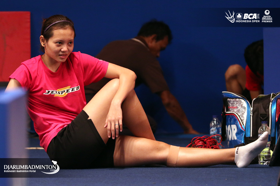 Annisa Saufika (Indonesia) melakukan pendinginan usai berlatih