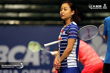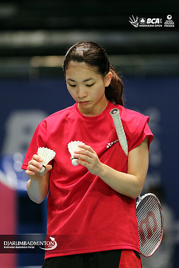 Misaki Matsutomo (Jepang) memilih shuttlecock