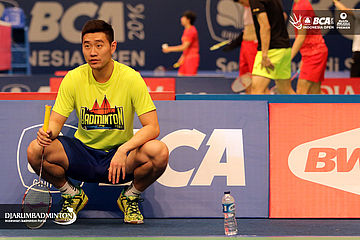 Liu Cheng (Tingkok) bersiap-siap dipinggir lapangan