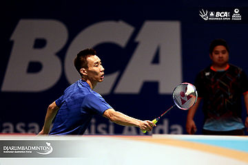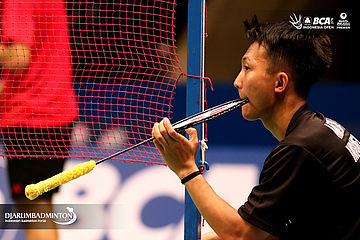 Ihsan Maulana Mustofa (Indonesia) menggigit raketnya