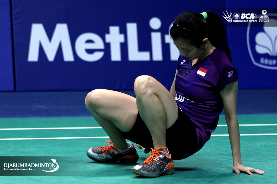 Debby Susanto (Indonesia) terjatuh