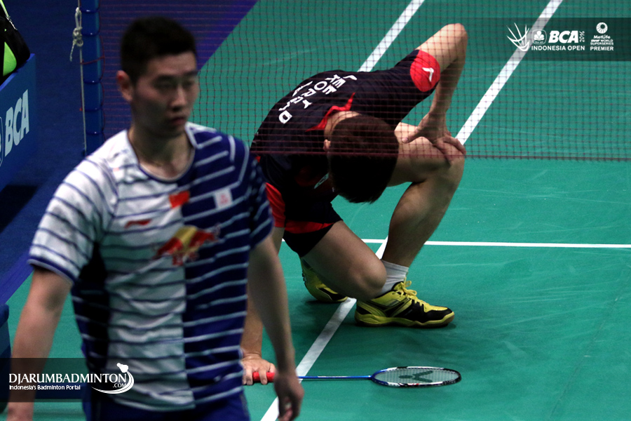 Lee Yong Dae (Korea) meminta maaf kepada lawannya