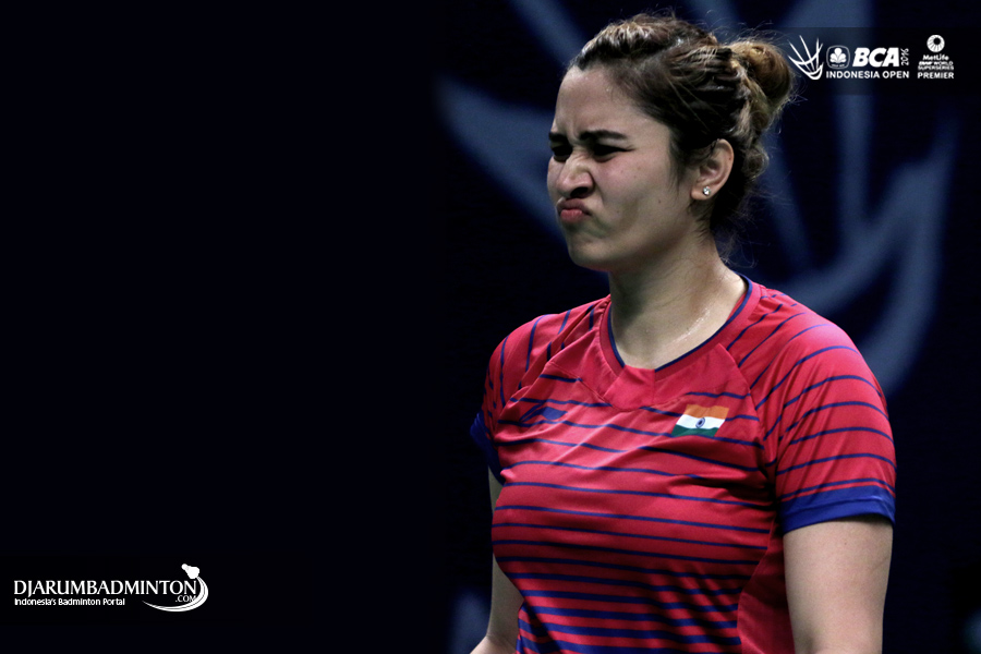 Ashwini Ponnappa/Jwala Gutta (India) menghadang serangan