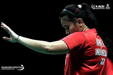 Ekspresi Richi Puspita Dili (Indonesia) saat berhasil mencetak poin