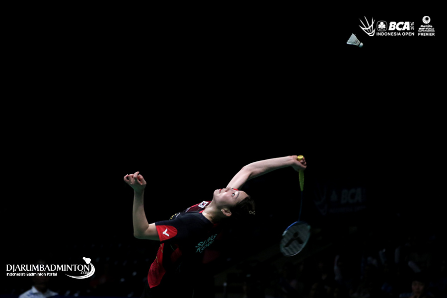Sung Ji Hyun (Korea) bersiap melepaskan serangan
