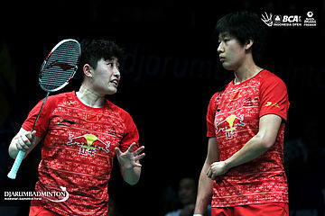 Yu Yang/Tang Yuanting (Tiongkok) bersiap menyambut pengembalian