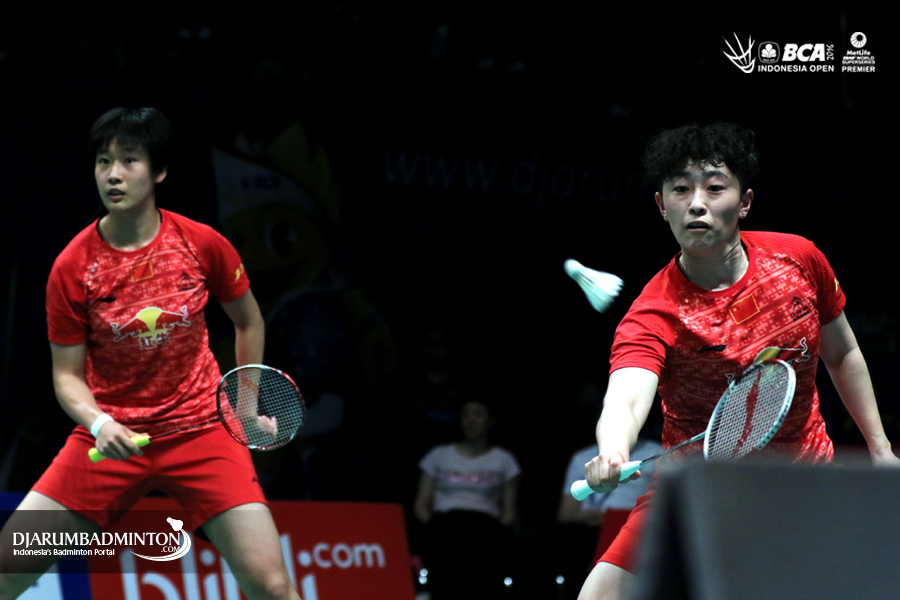 Yu Yang/Tang Yuanting (Tiongkok) menghadang serangan