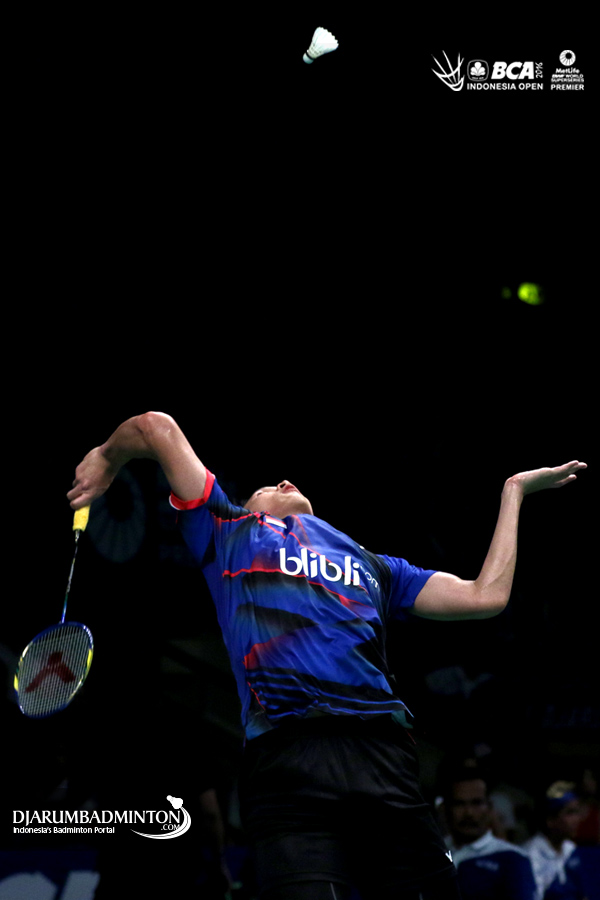 Jonatan Christie (Indonesia) bersiap menyambut pengembalian