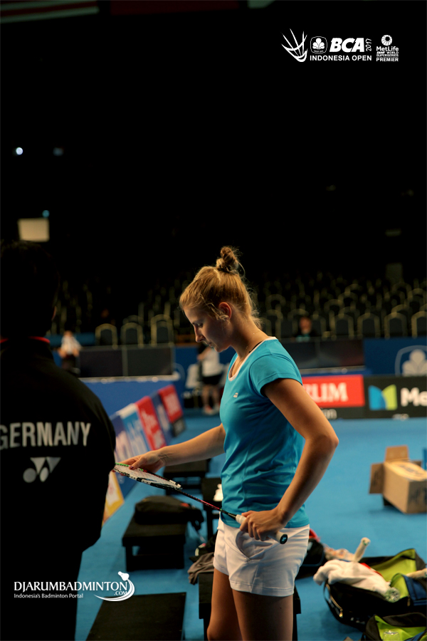 Chen Qingchen (Tiongkok) saat menyimak pertanyaan di Press Conference BCA Indonesia Open Superseries Premier 2017