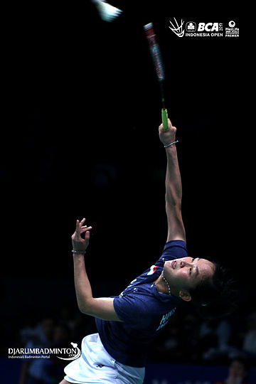 Ruselli Hartawan (Indonesia) melepaskan serangan