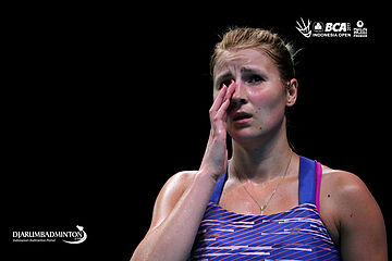 Ekspresi kekecewaan Gregoria Mariska (Indonesia)