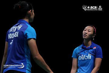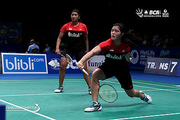 Jauza Fadhila Sugiarto/Serena Kani (Indonesia) menyambut pengembalian