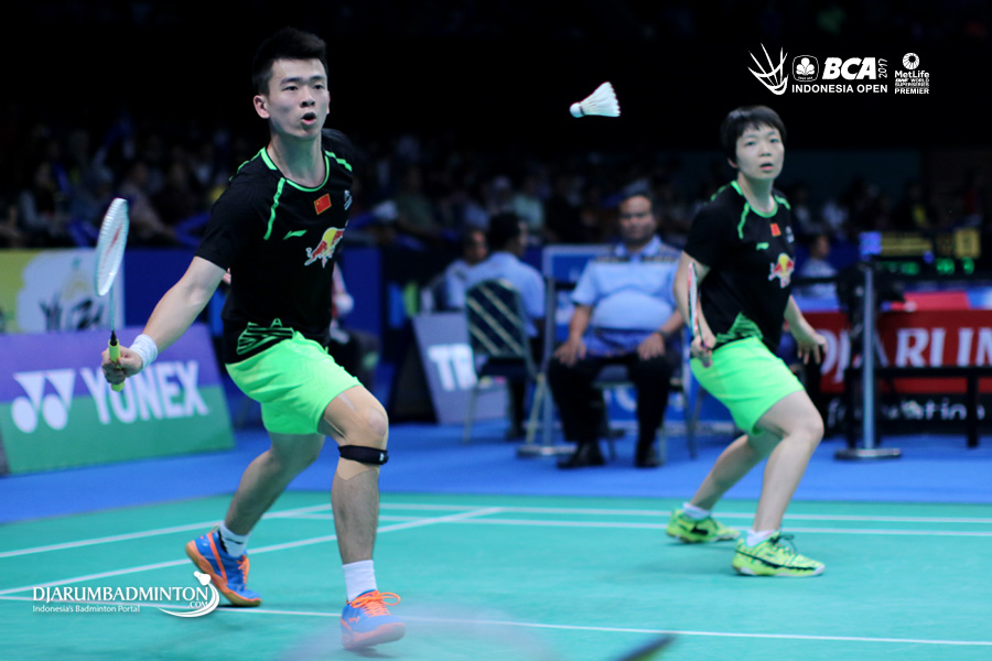 Zheng Siwei/Chen Qingchen (Tiongkok) bersiap menyambut pengembalian.