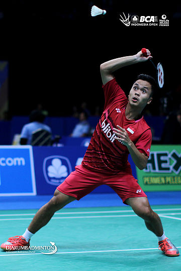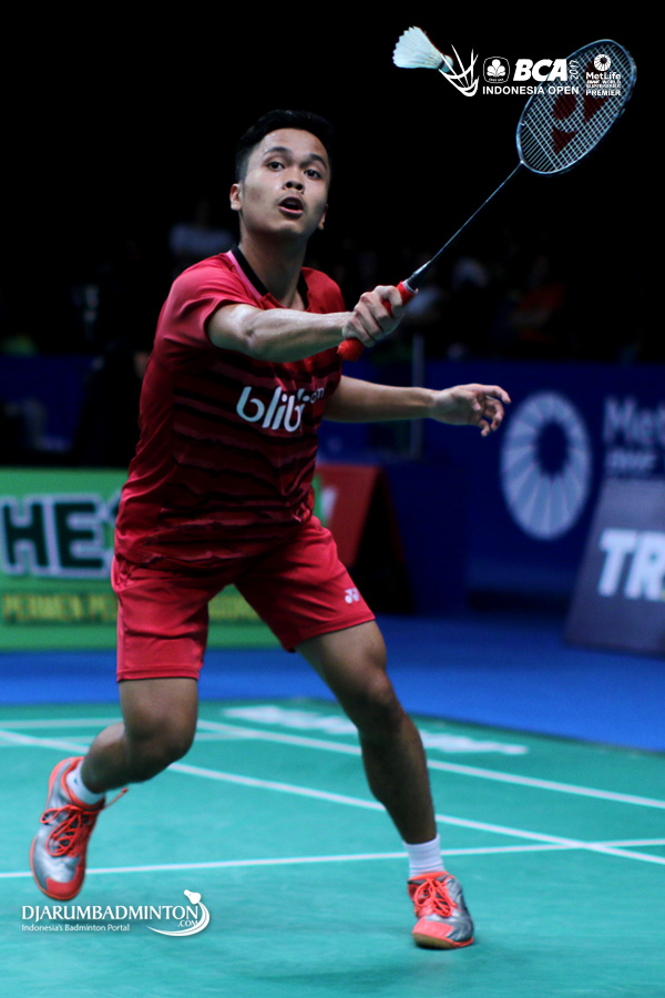 Anthony Sinisuka Ginting (indonesia) bersiap menyambar pengembalian