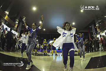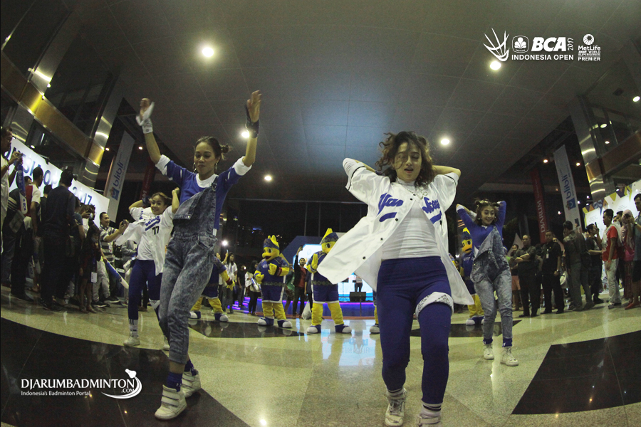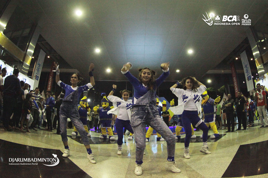 Dancer menghibur pengunjung di gelaran BCA Indonesia Open 2017