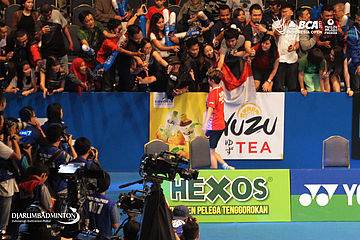 Tontowi Ahmad dan Liliyana Natsir (Indonesia) menyapa pendukungnya