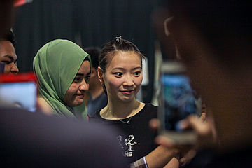 Huang Yaqiong (Tiongkok) foto bersama penggemar