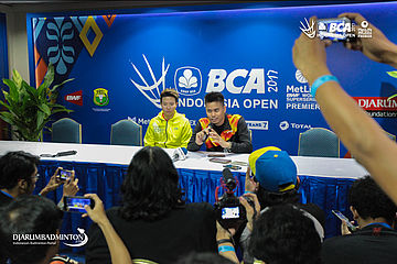 Liliyana Natsir dan Tontowi Ahmad (Indonesia) saat menjawab pertanyaan wartawan