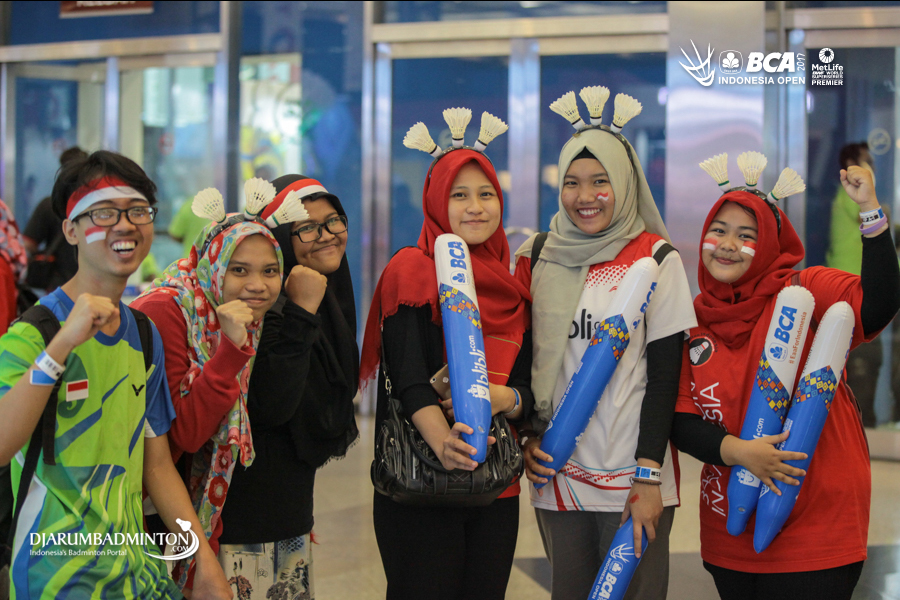 Para penonton dengan antusias menyaksikan BCA Indonesia Open Superseries Premier 2017