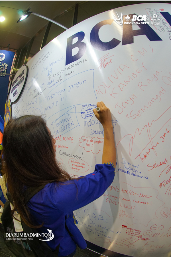 Pengunjung menuliskan dukungannya di Wall of Fame