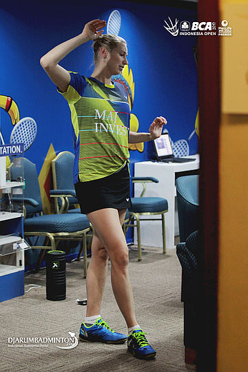 Natalia Koch Rohde (Denmark) melakukan pemanasan sebelum bertanding