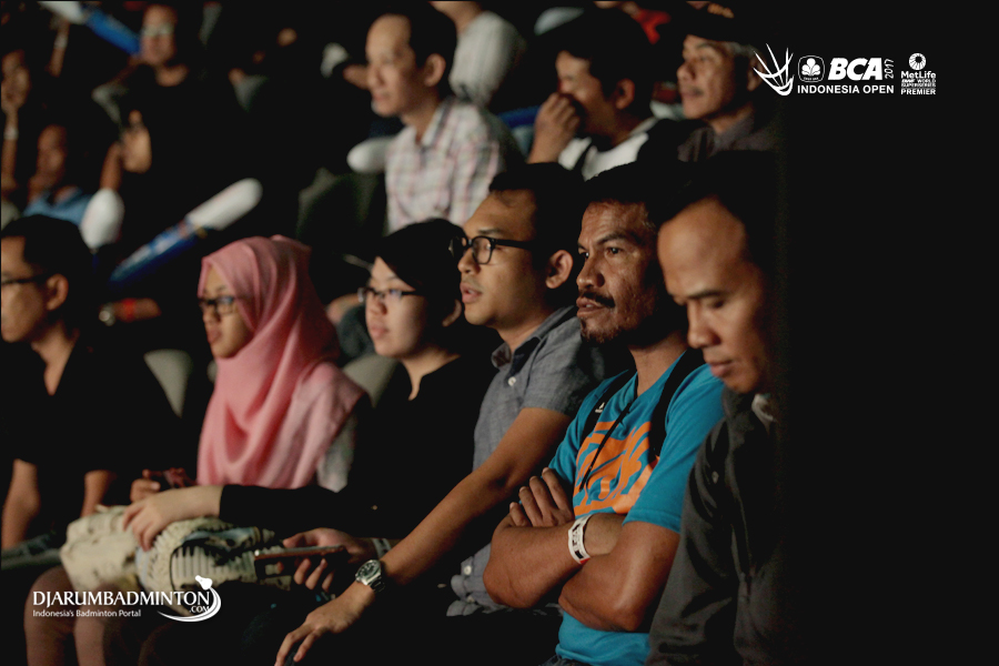 Suasana di bangku penonton saat pertandingan berlangsung